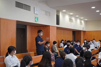 当日は、理工学部生命学系の清水教授、新家専任講師、水谷助手が審査員として参加したほか、生徒たちも自分たちのグループ以外の発表について審査を行いました。審査項目の「発表内容」、「プレゼン」、「質疑応答」の得点の合計により、最優秀賞、優秀賞、ベストプレゼン賞が選出され、表彰式では賞を獲得したグループが呼ばれると歓声や驚きの声が上がりました。今回の発表会を通して、生徒たちは他のグループの研究や発表に互いに刺激を受けたようでした。審査員の講評として、新家専任講師から「この授業での経験を活かし、今後もぜひ各々興味のあるテーマで研究を続けていってほしい」と生物を学ぶ生徒たちへエールが送られました。