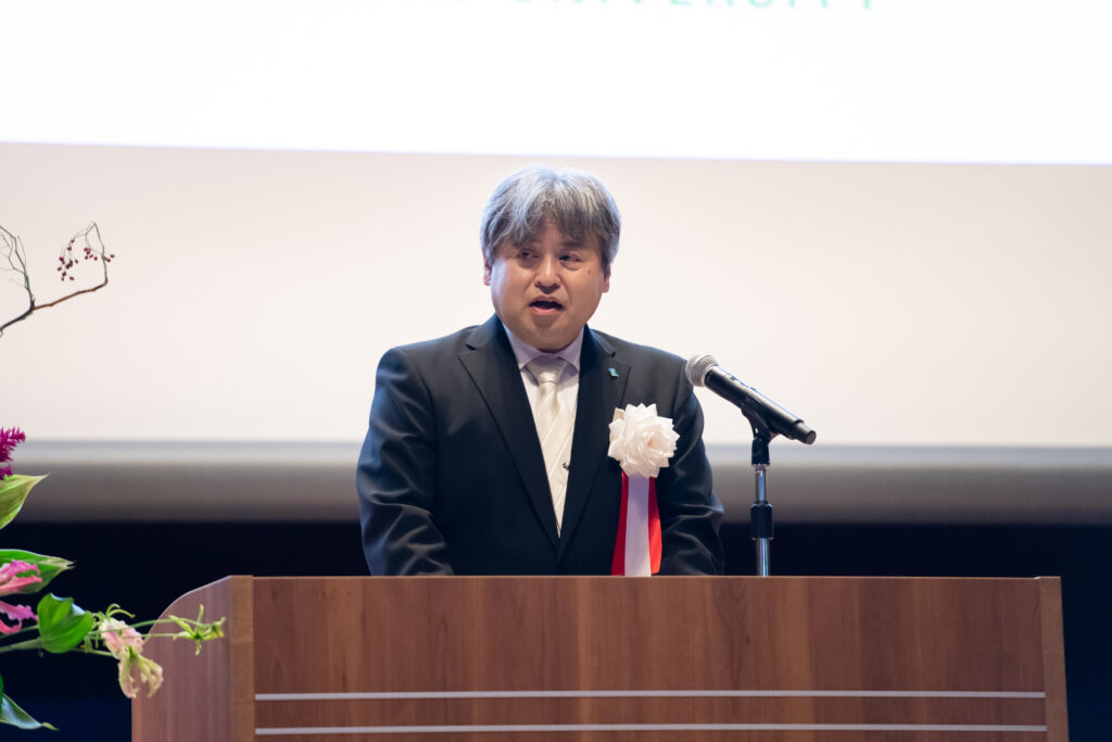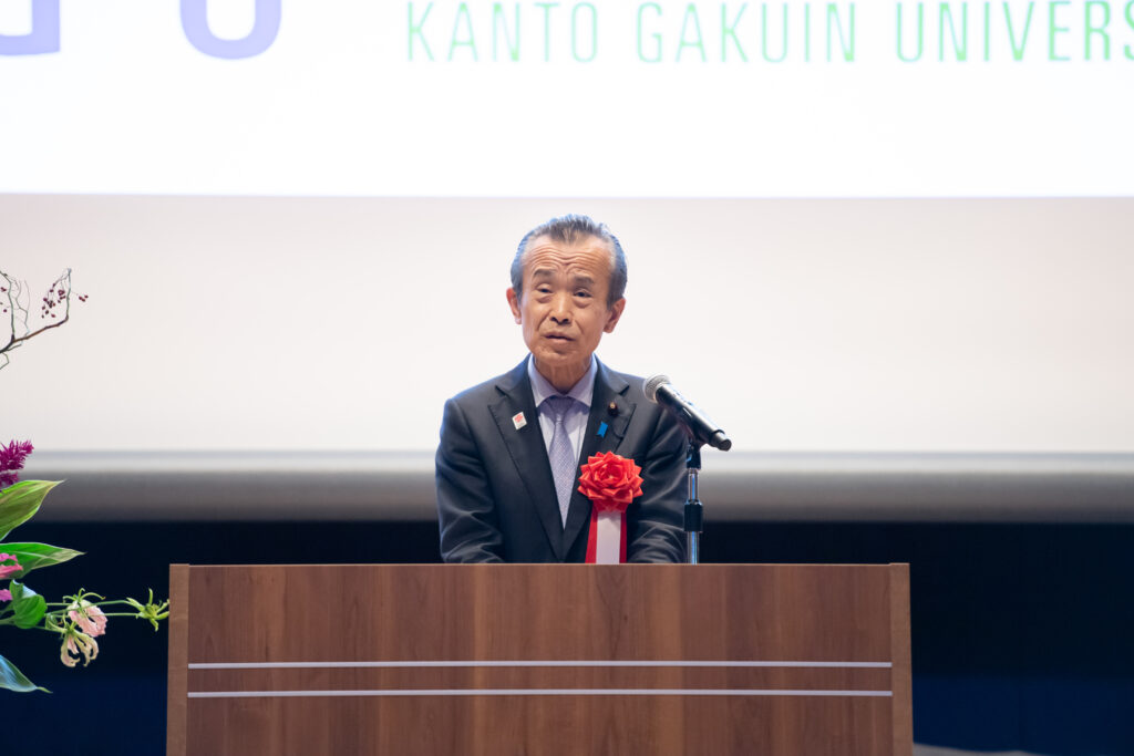 続いて山中市長から「横浜市がさらなる発展を続けていくためには、若い世代や企業を呼び込み、活力を向上させていくことが重要です。横浜・関内キャンパスは、横浜の地に活気と賑わい、そして新たなイノベーションを生み出してくれる存在になると思います。関東学院大学が持つ人的知的ネットワークや資源を地域の活性化や社会課題の解決に繋げ、一緒に横浜の発展に向けて取り組んでいきたいです」と祝辞を賜りました。