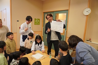 最後に友野准教授から「これからも興味をもったことがあったら、調べてみたり、動画を見たりして大人の人と一緒に安全に実験を楽しんでみてください」と園児たちにメッセージを送り、イベントは終了しました。