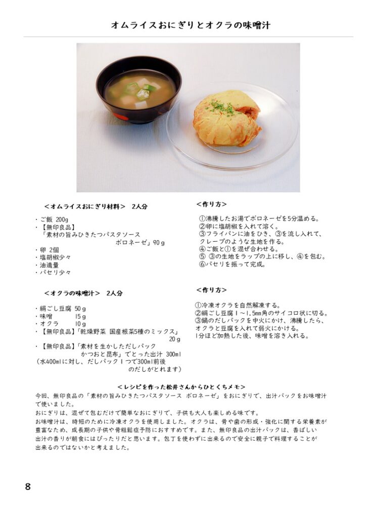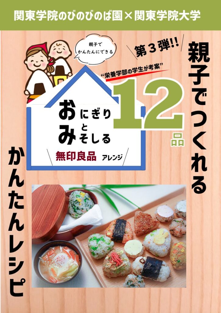 今回作成したのは、「おにぎりとお味噌汁」がテーマのレシピ集。おにぎりと味噌汁を食べる機会や食育の関心についてのアンケートを子育て支援施設等を通して行い、レシピの参考にしました。レシピは、関東学院大学栄養学部の細山田洋子教授のゼミナール生が考案したもので、子どもたちでも簡単にできる調理工程や栄養バランスを考慮し、おうちで親子時間が楽しめるよう12品が紹介されています。