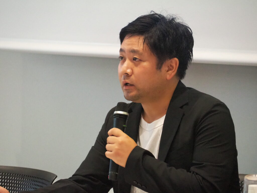 石井教諭からは、これまでに行ってきたのびのびのば園と野庭地域や企業などとの連携事業について紹介がありました。他ののば園教職員の補足説明も挟みながら、「地域と繋がりを築いていくことで、賑わいの創出が生まれ、地域の活性化に結び付いていきます。保育業界と関わりのない業界の方にも、のびのびのば園がこういった取り組みを行っていることや、取り組みから生まれるメリットについて知ってもらえると嬉しいです」と話がありました。